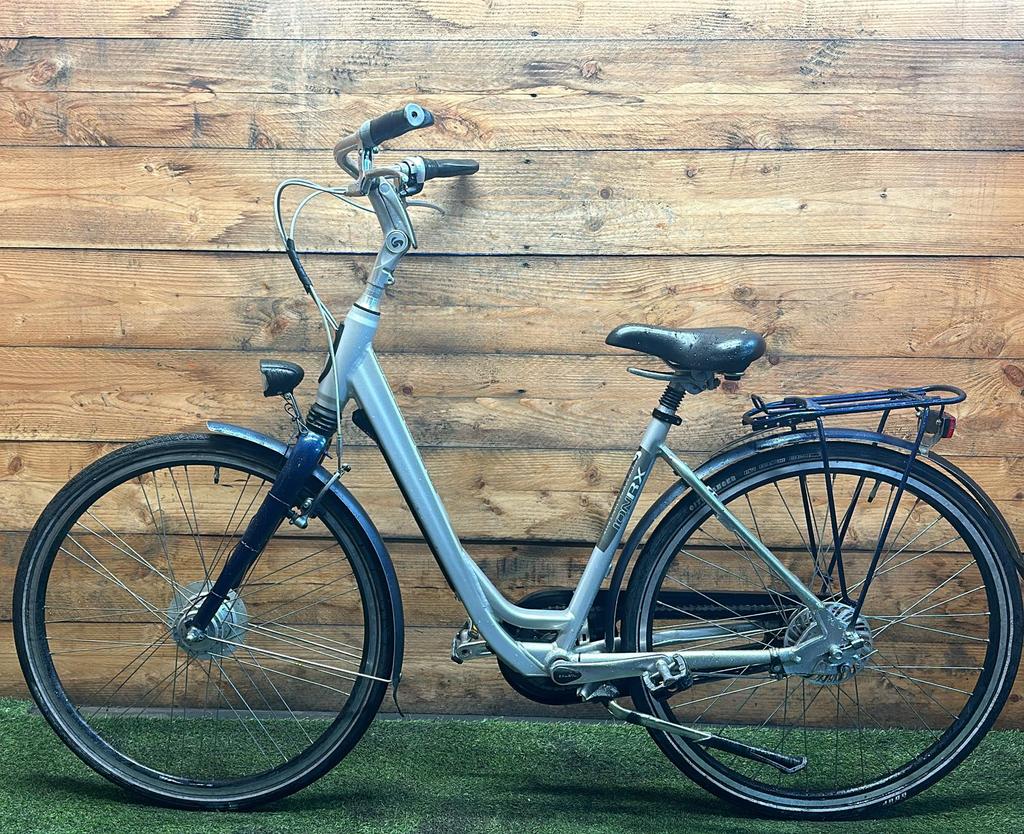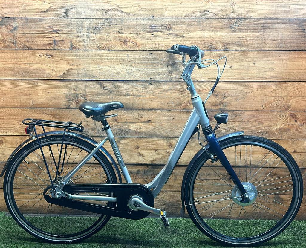 Hoewel de fiets gebruikssporen heeft, is deze technisch volledig gereviseerd en zijn versleten onderdelen vervangen door nieuwe