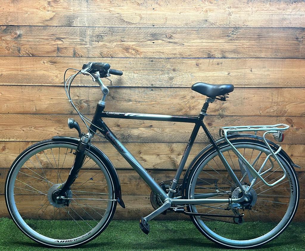 Hoewel de fiets gebruikssporen heeft, is deze technisch volledig gereviseerd en zijn versleten onderdelen vervangen door nieuwe