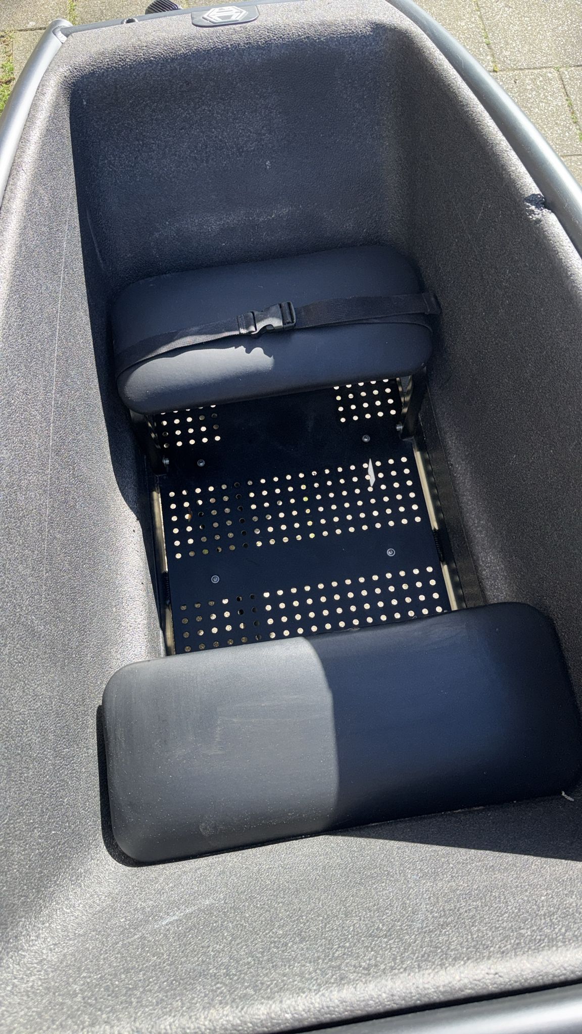 Polisport-Rücksitzbank in Dunkelgrau montiert